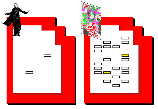 Luckily, the Joker code only has two holes, making the task very simple. The defaced Cosby poster shares those holes. You determine that the defaced Cosby could only result from a double-punching with the Joker, if your theory is correct. This means the original Cosby poster had one of those holes punched, or the other, or neither, making three total possibilities.