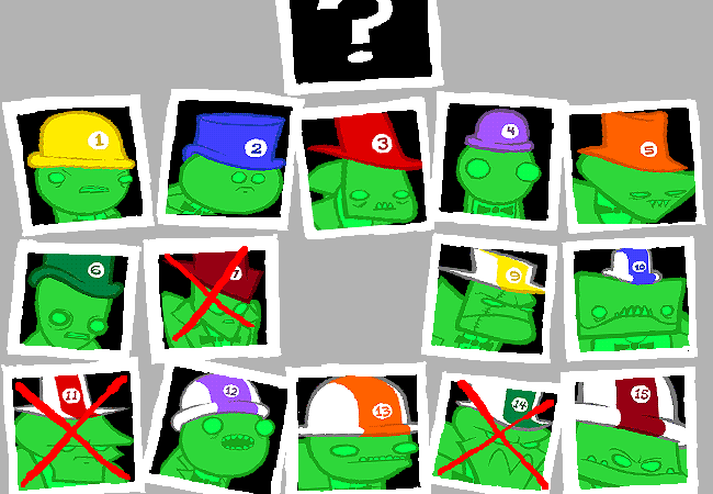 ITCHY (1) has given you the slip repeatedly. DOZE (2) you've captured and interrogated just as repeatedly, to no avail. TRACE (3) has broken into your secret hideout more times than you can count, while FIN (5) always seems to be a step ahead of you and scoops your heists. CLOVER (4) has all the intel and is highly cooperative. You might need him to crack the vault. He'll be guarded. Best to avoid DIE (6) in any direct confrontations unless you want a temporal mess on your hands. But if you need any repairs, you could always get to STITCH (9) and "persuade" him. And you might need to if you can't kill SAWBUCK (10) with a clean shot. EGGS (12) and BISCUITS (13) are morons. But they are dangerous morons. CANS (15) is a tank and your crew'll probably need more ammunition than you packed to take him down.