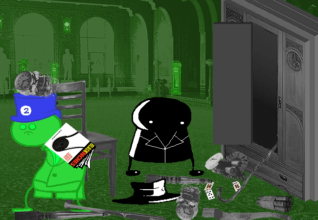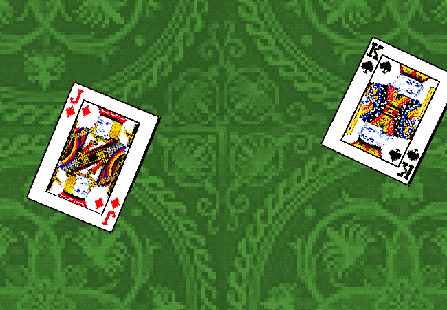 You stand nearby the two remaining cards on the floor. An OFF-SUITED KING AND JACK.