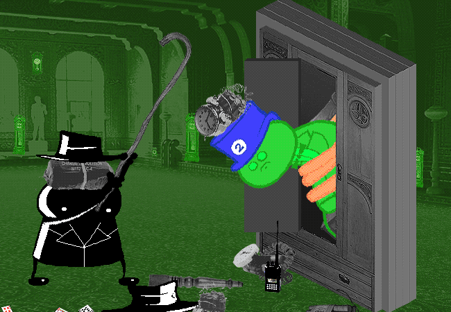 Time to hit the road. You beat your hostage into the back of your BATTLEDROBE with the BULL PENIS CANE.