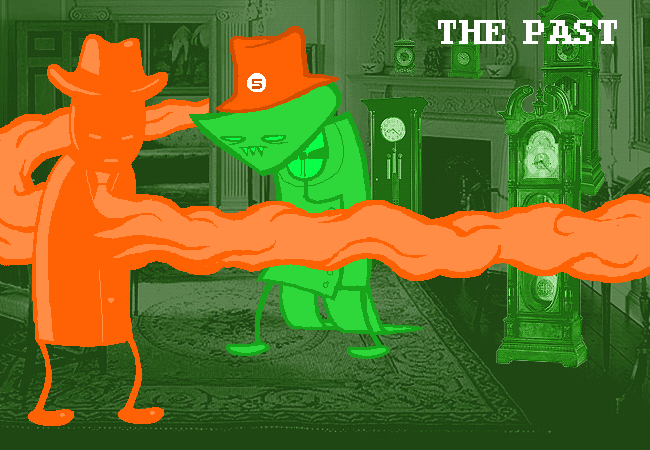 He's followed your FUTURE TRAIL here. He likes to mess with you from the past.