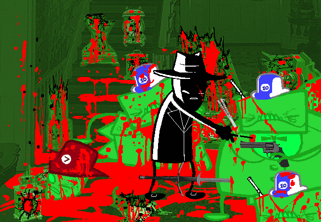 You pry the CIGARETTE HOLDER from his torso. Whoops, another time jump.