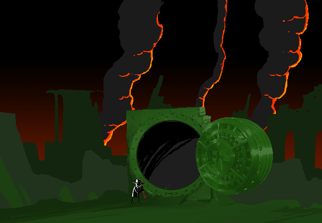 The massive release of temporal distortion from the vault transports you to a highly unfavorable timeline. Looks like the entire mansion was leveled, except for the vault and its enclosure. Everyone's dead except for you and you know who.