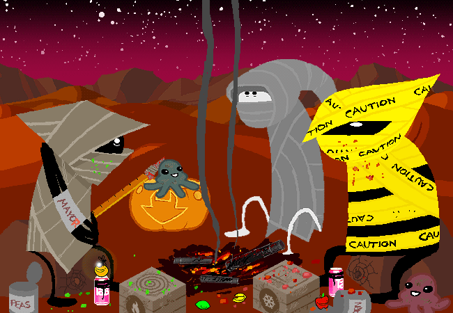 It is a clear and peaceful night. A delicious meal has been shared with new friends. The glow of the ammunition fire gradually subsides. All is well.