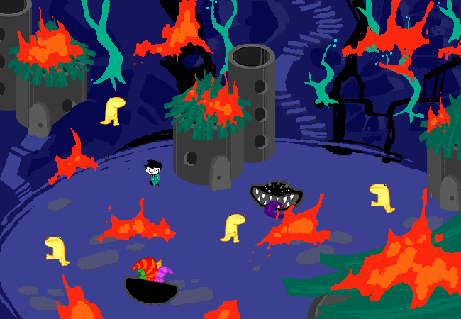A big gust of wind conveniently comes along and blows out all the fire.