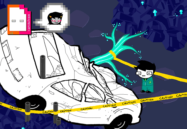 You find your father's car near the base of the rock pillar. It is surrounded by caution tape for some reason. You are reminded to be cautious.