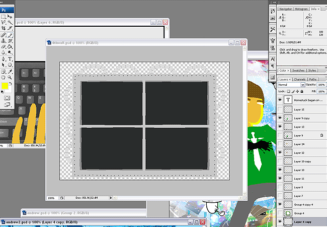 I'll pull up Photoshop again. Here's the file I was using for the fourth wall.