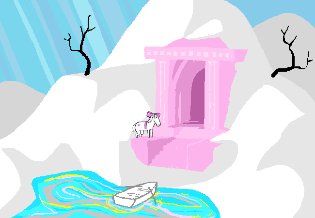 You stand outside some ruins which your beloved master's mother entered recently. Outside you find a striking scarcity of oats or greenery or anything at all that is delicious to chew on. This is as compelling a reason as any to follow her inside.