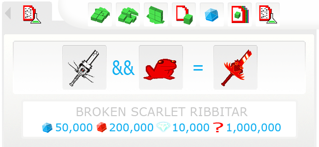The combination would produce the BROKEN SCARLET RIBBITAR.