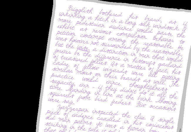 "You're certain of this?" asked Frigglish. Despite what he was doing with his beard, he was, in fact, immersed in meaningful contemplation.