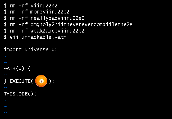 It is an extremely simple ~ATH program. Its main loop is tied to the lifespan of the universe. When the universe dies, a mysterious subprogram will be executed. You have no way of knowing what that subprogram does. It runs on a protected part of the server. It is completely unhackable.