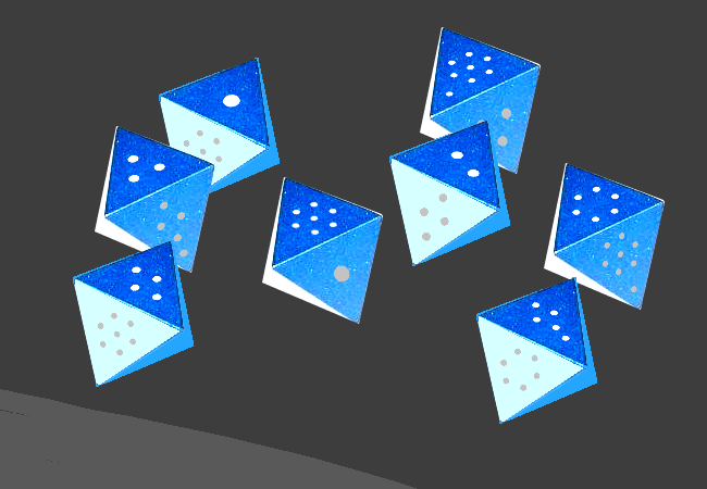It consists of eight D8, plundered from a ghost ship during a particularly challenging campaign. In ancient times such weapons were employed by roving bands of GAMBLIGNANTS, deadly marauders with a passion for chance. They all died off though. Took too many crazy risks.
