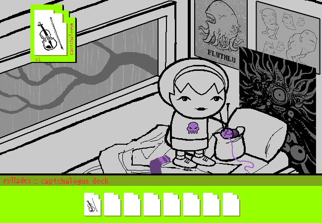 You get the KNITTING BAG. It occupies the LEFT LEAF CARD under the VIOLIN, per the TREE MODUS'S alphabetical sorting method.
