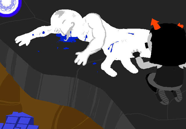 One retrieves his dead custodian from the rubble below.