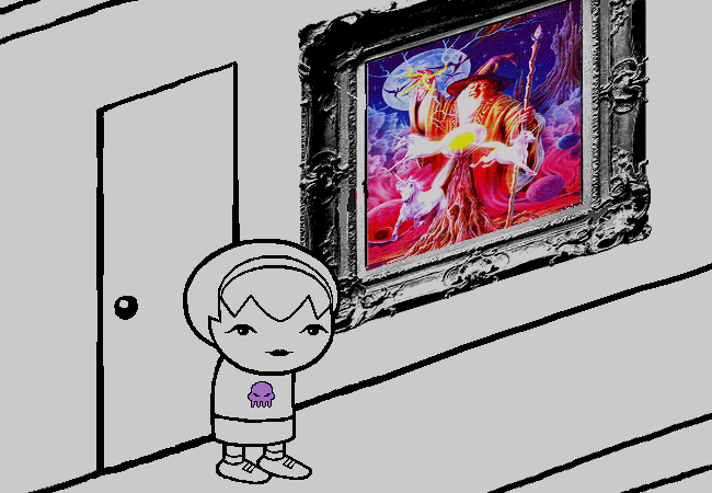 Hanging just next to your door in the hallway is a painting of an EXQUISITE WIZARD. Your mother collects these awful things IRONICALLY. She must know how much you detest them, and there is no doubt in your mind she stores these dreadful things in the house to bother you.