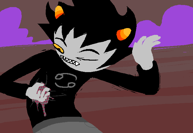 He still won't shut up. He doesn't seem to care about the wound. He's just going on and on about the freakish color of his blood. He doesn't want you to look at it. Just look away, he says.