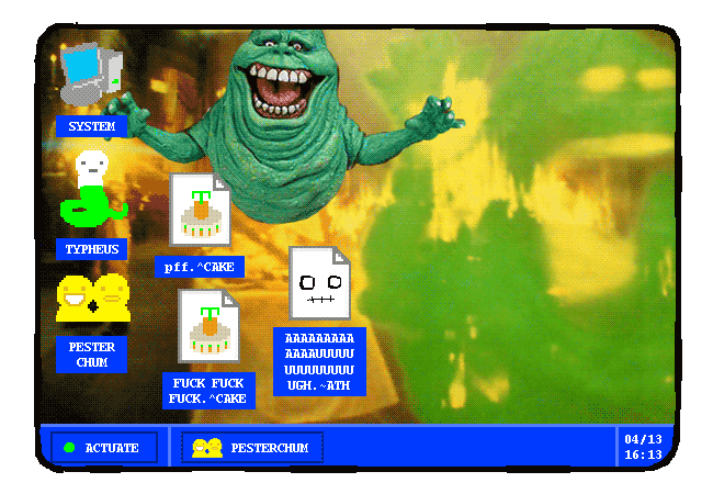 You pull up to your COMPUTER. This is where you spend most of your time. You decorated your desktop with some rather handsome WALLPAPER which you made yourself. You are really proud of it.