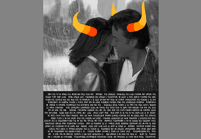 But if there was one theme to be hammered through his thick skull, it would be the trolls' cultural preoccupation with romantic destiny. Yes, the romantic landscape is rife with false starts and miscues and infidelities, red and black. But every troll believes strongly that each quadrant holds one and only one true pairing for them, and it is just a matter of time before the grid is filled with auspicious matchups through the mysterious channels of TROLL SERENDIPITY.