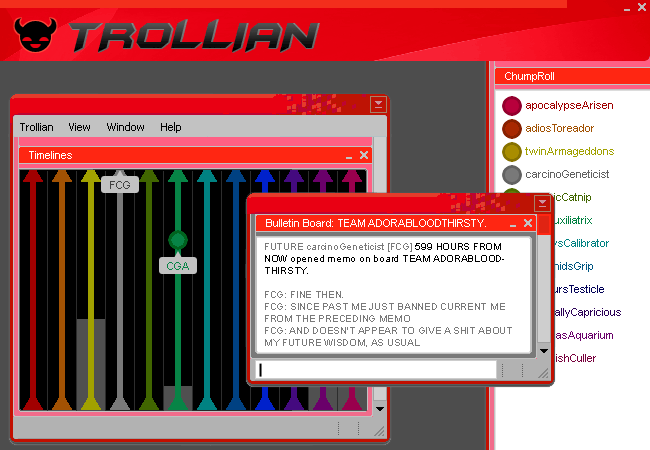 FUTURE carcinoGeneticist [FCG] 599 HOURS FROM NOW opened memo on board TEAM ADORABLOODTHIRSTY.