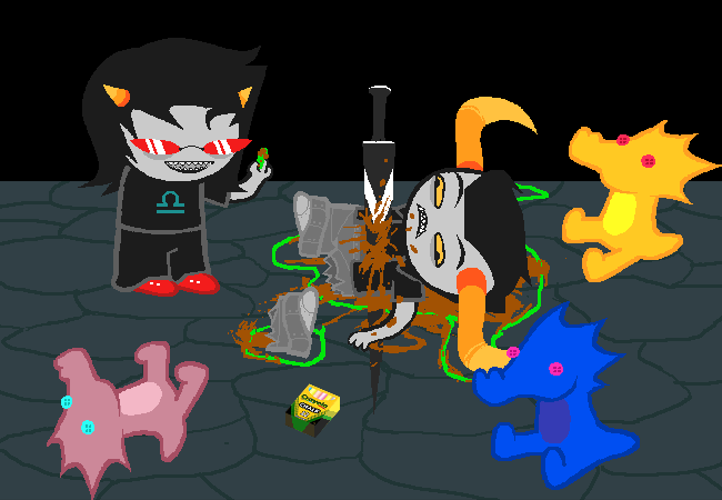 Which is to say, you hold up a piece of chalk to his snout and draw it yourself. Yuck, the chalk is getting blood on it! You will have to discard that color.