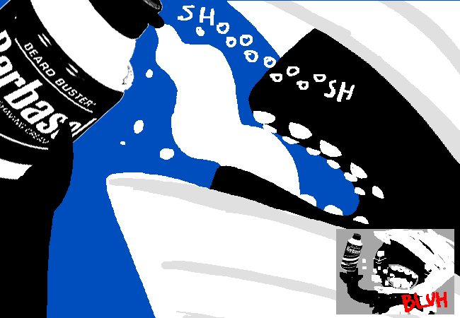 You gulp down decadent foamy dollops of the BEARD BUSTER, and quickly respond with the BLUH callback as depicted jostling in the lower right hand corner of the image, because it is not nearly as tasty as you'd hoped.
