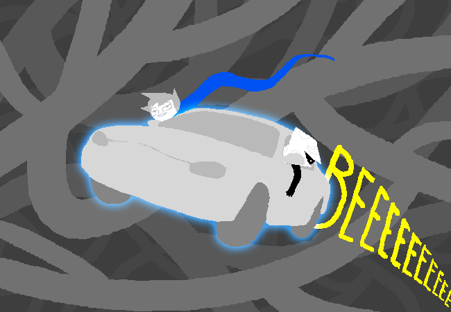 EB: maybe if i fly around in this car with this guy beeping here, the noise will get his attention and he will find me.