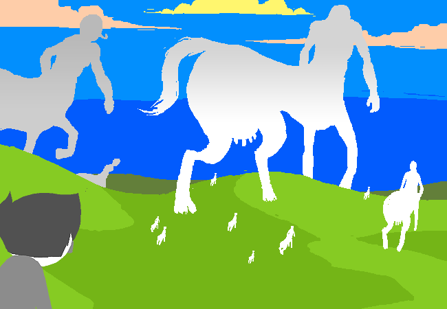 Looks like the centaur herd is out in full force today. You have to be careful about walking under them. There are extreme hazards involved, such as the threat of falling manure, or milk.