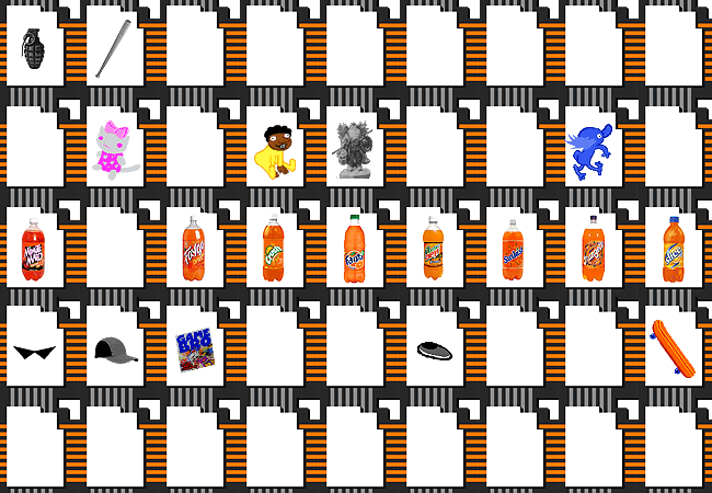 For instance, the 3rd GROOVE ROW got kind of railroaded into becoming an orange soda row, so you've just been rolling with it recently. The 4th row is pegged for stuff associated with cool bros. The 2nd row is all about dolls, puppets, and stuff like that. The GEROMY PLUSH is clearly suitable for that row, and rhymes with CRUSH, so that works out.