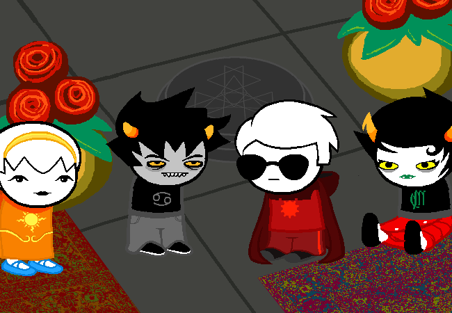 KARKAT: ANYONE CAN SEE THAT, IT'S THE SHITTIEST KEPT SECRET ON THIS METEOR. PROBABLY EVEN THE FUCKING MAYOR GETS IT, AND LET'S FACE IT, HE'S A LITTLE SLOW.