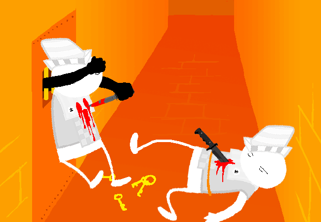 That is not how you convince someone to do something. You're supposed to save the stabbing until AFTER you intimidate him into doing what you want! How exactly is a dead guy supposed to pick up some keys for you?!
