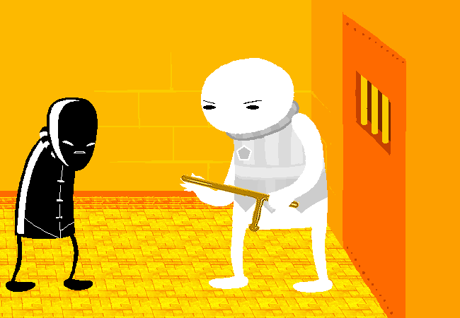 Looks like the sentry phoned downstairs for a little muscle. It's one of the regulator lugs they use to keep the gen pop in line. This guy has an itchy baton wrist and that look in his eye you know all too well. He's not leaving this room until one of you is good and bloody.