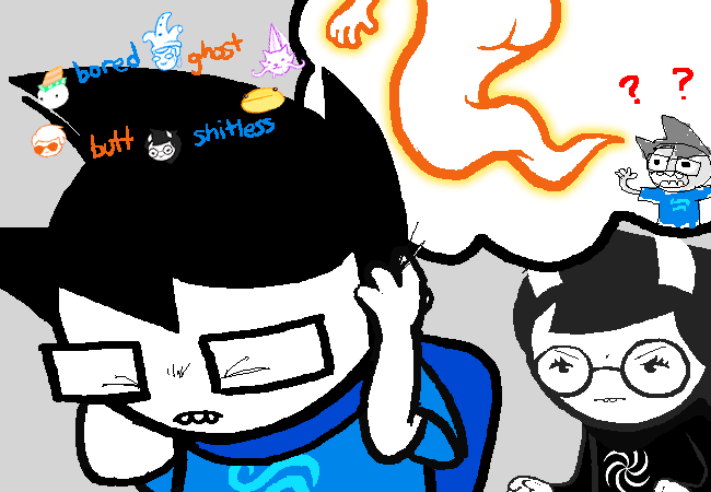 JOHN: oh sure, i'm sure it's GREAT for you. you get to spend your days smooching and breaking up with dave sprite and what not, and you can shrink down to any old planet you feel like, any time. whereas i have to make this whole big deal of ASKING you to shrink or unshrink me, and...
