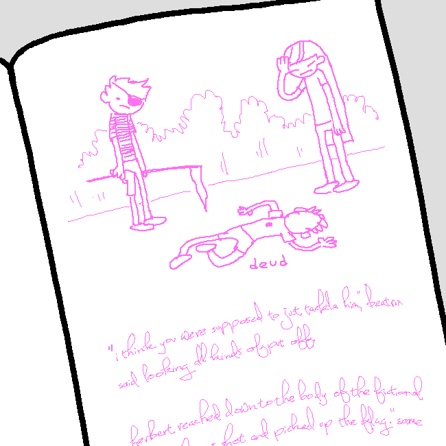 wizardy herbert reached down to the body of the fictional camper he just shot and picked up the flag. "same difference."