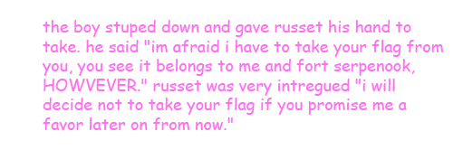 "this is some lame magical version of capture the flag. the book wanted me to capture the flag from him. the flag has now been captured. anyway, hes just a kind of brainless puppet."