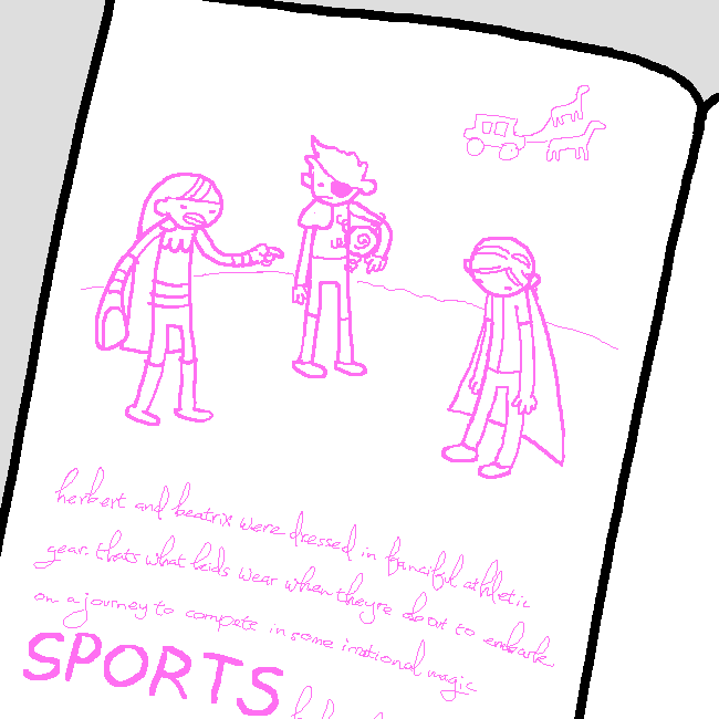 herbert and beatrix were dressed in fanciful athletic gear. thats what kids wear when theyre about to embark on a journey to compete in some irrational magic