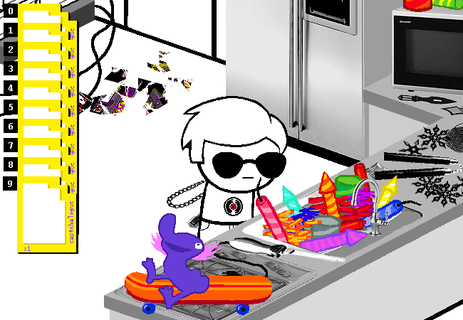 You captchalogue all the FIREWORKS (2+1+2+1+2+1+2+2+2 = 15%10 = 5) the sink has to offer.
