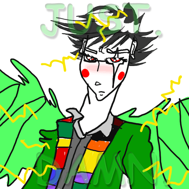 THIS IS YOURS TRULY. MY SELF INSERTION GUY. WHICH IS MY PREROGATIVE TO DO AS AN ARTIST. I LEARNED THIS FROM MY "MASTER". THE WISE ASSED GHOST WHO HAUNTED MY COMPUTER. HE WAS THE BEST THERE WAS AT STUFF LIKE THIS, HE TOLD ME ONCE. TRULY, HE WAS QUITE THE PIECE OF SHIT.