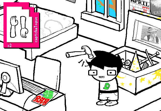 You retrieve your FAKE ARMS from the chest. You use these for HILARIOUS ANTICS.