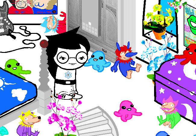 You enter your bedroom. On this side of the room you are immediately confronted with numerous artifacts highlighting your various INTERESTS.