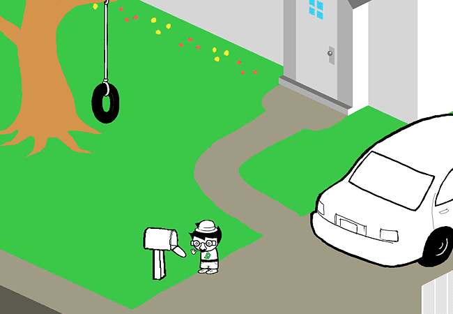 Predictably, the mailbox is empty. You have already been scooped by your father.