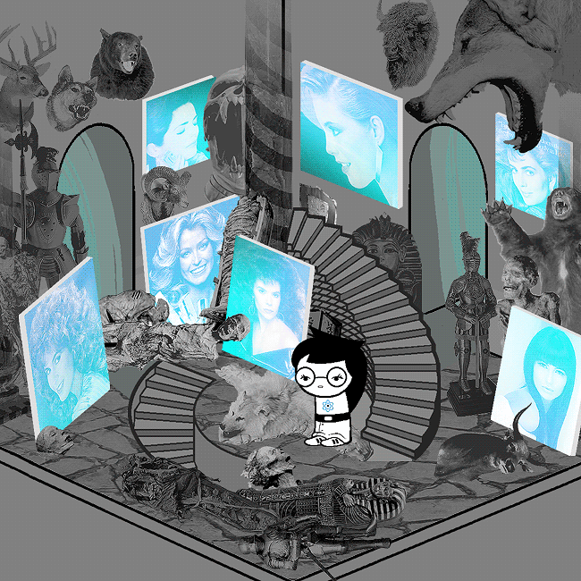 This is your grandfather's collection of what he refers to as his BEAUTIES. No lovely lady will be fit for his collection unless her portrait has spent at least 20 years bleaching in the front window of a beauty parlor, a sort of establishment he's plundered no less frequently than ancient tombs.