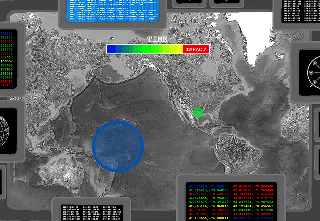The second biggest is centered over a U.S. city. The biggest by a landslide is, luckily for the Earth you suppose, way out in the middle of the Pacific ocean.