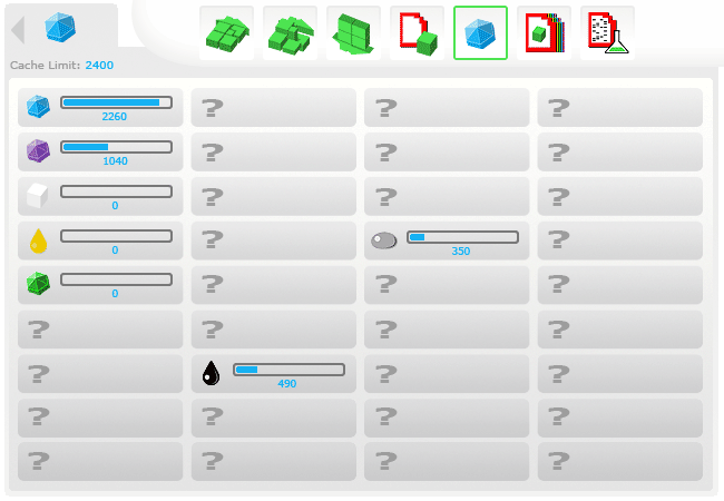 You gather up 2260 pieces of BUILD GRIST, 1040 pieces of SHALE, 490 drops of TAR, and 350 drops of MERCURY.