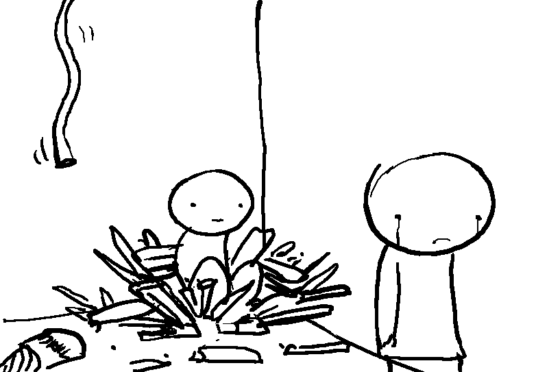 Crushed by the loss of your prized automaton, your son of lumber, you are reduced to tears.