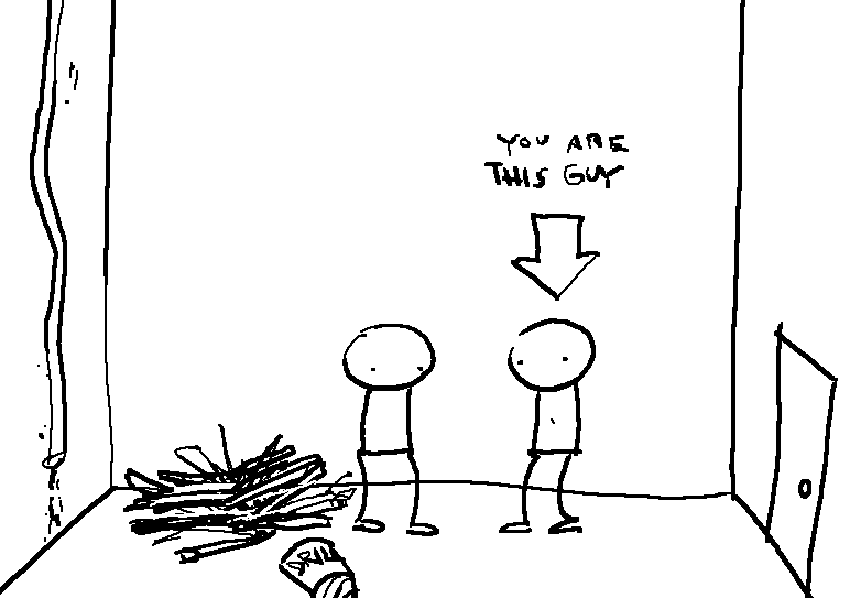 You and your newfound buddy stand face-to-face, wondering what to do. The shattered remains of drillgorg rest in a tragic heap.
