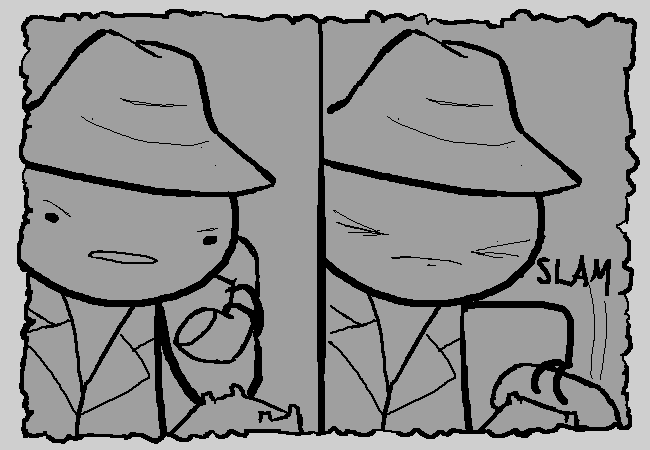 You answer the phone in the best Depression-era fast-talking way possible. On the other line is a hysterical dame.