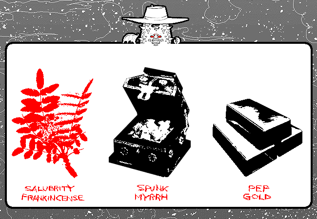 His supplies of SPUNK MYRRH and PEP GOLD each remain.