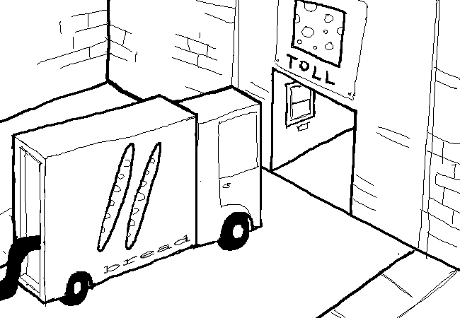 Unfortunately, your vehicle cannot possibly fit through the SQUARE SHOULDER TOLLS and on to the BOUCHÈRE DISTRICT.