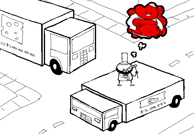You pause nearby a HAM TRUCK. It appears some fellow is standing on top of its cabin, peering through his fancy OPERA BINOCULEERS to get a better look at something astounding he may have seen in the sky.