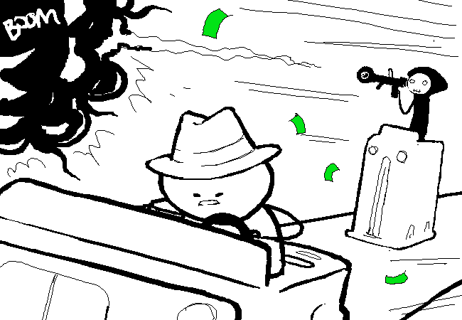 You and Death fit into the PEG SLOTS of your GAME PIECES. Death is in hot pursuit, taking shots at you with his ANTI-TANK ROCKET SCYTHE.